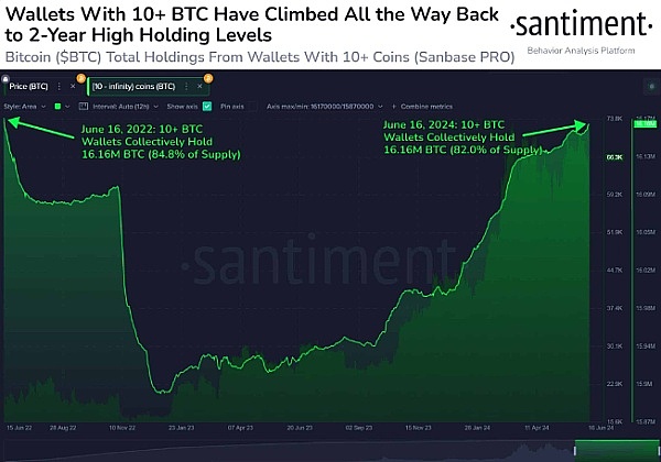 Santiment 的链上数据显示,持有 10 个或更多比特币的钱包数量已与两年前的持仓量持平。分析师表示,美联储恢复降息后,比特币价格将开始上涨。