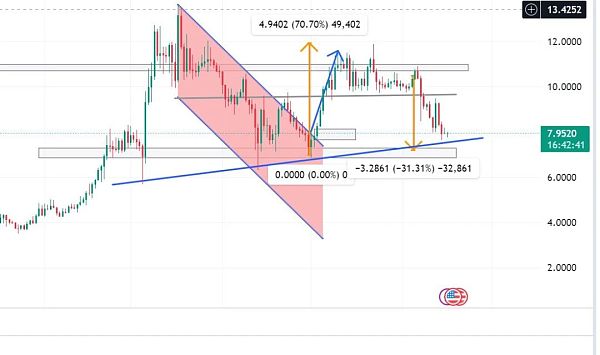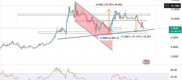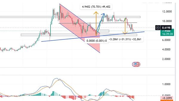 这意味着,如果该股重新测试约7.2美元左右的支撑位,它可能会转为上升趋势。然而,如果跌破该水平,它可能会进一步下跌至5.2美元。