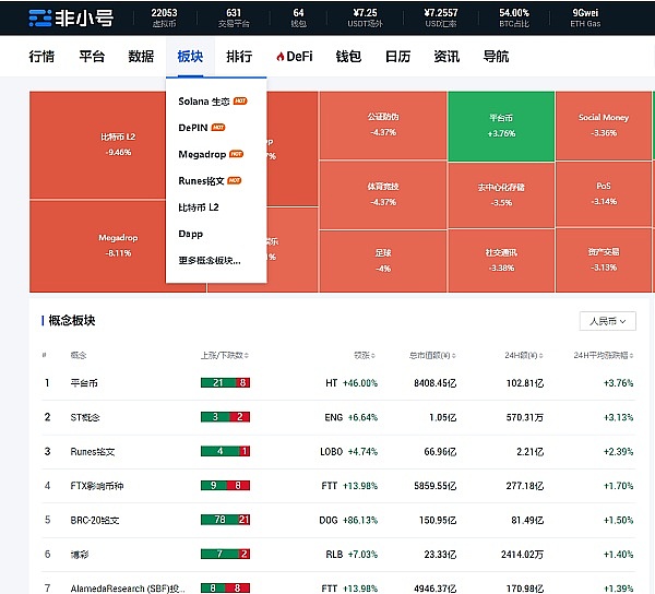 第二从赛道上面来分析!赛道也就是板块,也就是我们常说的你看好那个赛道,那个板块,如图所示,根据非小号的统计目前币圈分为94个板块,而且这一波牛市又泵发出很多新的板块,像DePIN 铭文 符文 破产板块等等,这些板块的出现无疑也是削弱币圈散户战斗力的原因之一!