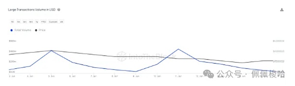 根据 IntoTheBlock 的数据,鲸鱼的兴趣在最近几周急剧下降。6 月 11 日,大额交易额达到 4.67 亿美元。然而,由于 CPI 消息弱于预期,加密货币市场面临看跌压力,鲸鱼对 SHIB 的兴趣大幅下降。这一指标在过去一周下降,跌至 2400 万美元的低点——跌幅高达 94%。