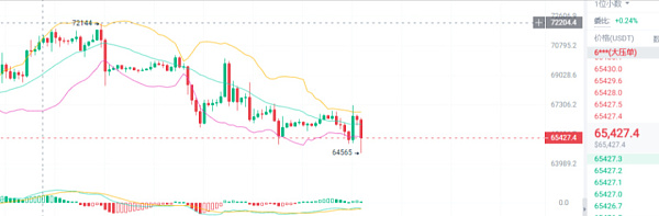 今天早上可谓惨不忍睹,上周BTC日线一直未能收回EMA20日线67700美元上方;这也导致EMA10日线最终下穿EMA20日线;以及这段时间以来多头每次反弹的高点都一次比一次低,这三种情况都表明整体行情空头占据主导优势,继续看空,目标63000/61500