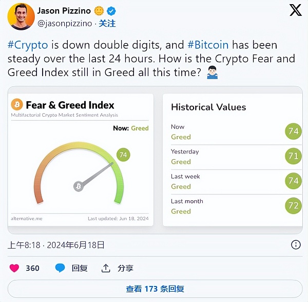 与此同时,尽管加密货币价格下跌,但比特币恐惧与贪婪指数已一个多月表明“贪婪”,因此加密货币用户仍然存在疑问。