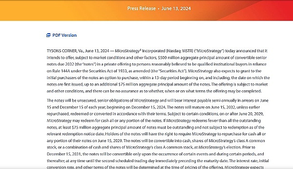 1、比特币持仓量霸主微策略(MicroStrategy)在6.13公告要推出5 亿美元的可转换优先债券,用来加仓BTC。微策略目前的比特币持仓为21.44 万枚BTC,购买成本约为75.43 亿美元,机构还在加仓BTC,还在发行债劵加仓,说明也是看好后市的!机构都没有离场怕啥子!
