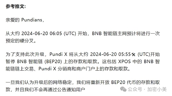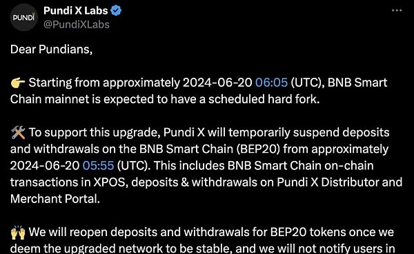 币安币(BNB)宣布,BNB 智能链主网预计将于 6 月 20 日 UTC 时间 6:05 进行硬分叉。