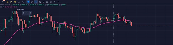 目前其实不管从小时级别、十五分钟级别都走到了波浪理论的第五浪结束,往往第五浪结束后迎来的可能是反转或反弹,所以极小的概率走第七浪,日线明显强度还是不够的,反弹力度也不大,周末最高66770,最低64262,要确定的是反弹会不会越来越弱。