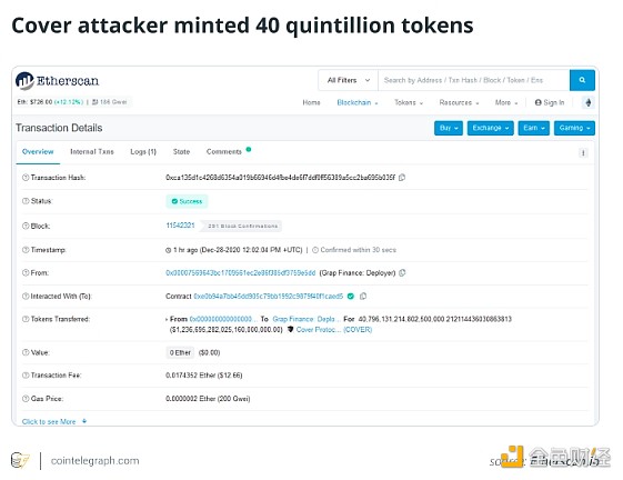例如,在 2020 年 12 月的 Cover Protocol 攻击期间,代币的价值在几个小时内从 700 多美元跌至不到 5 美元,持有 COVER 代币的投资者遭受了财务损失。黑客铸造了超过 40 千万亿枚代币。