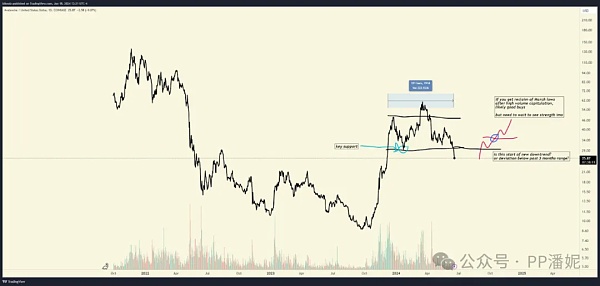 1)BTC和SOL作为异类保持强势,目前的低点在过去几个月的盘整中保持不变(5.8万-6万美元和110-120美元),当市场在进一步横盘整理后,其他山寨币消化了大部分的下行和底部(作者目前的观点属于这一情况,只相信横盘整理/下跌直到第三季度末/第四季度)