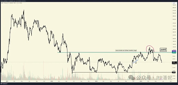 4) AAVE (较老的山寨币)本周期从未出现上涨趋势,仍然停留在熊市的区间范围。