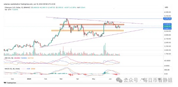 SEC 撤回调查的消息一经传出,ETH 价格便迅速上涨,并克服了之前的看跌走势。尽管比特币仍徘徊在 65,500 美元左右,但 ETH价格已突破 3,500 美元。然而,第二大代币需要突破某些水平,这才可能使价格突破 4,000 美元。