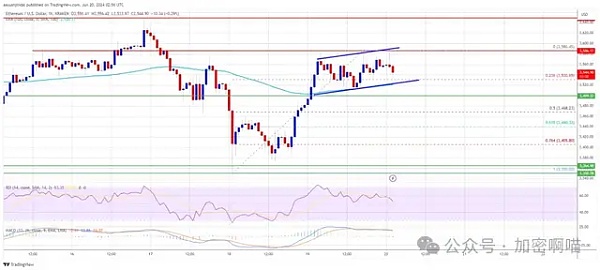 Ethereum 仍在 3 , 500 美元和 100 小时简单移动平均线 上方交易。ETH/USD每小时图上也有一个短期上升通道形成,阻力位在3585美元附近。
