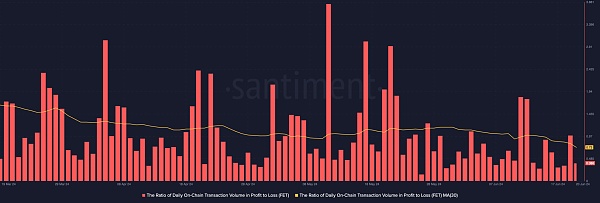 有趣的是,尽管 FET 的价值呈现两位数增长且其社会主导地位攀升至数月来的最高水平,但其持有者却未能从交易中获利。