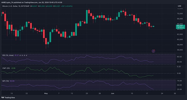 在 6 月 13 日触及 68,000 美元之后,比特币 [BTC]价格转为看跌,因为该代币的周线图和日线图仍为红色。