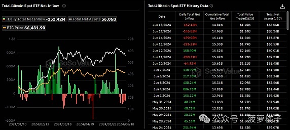 近期比特币走势不好看,日线跌破了MA120,加上比特币ETF连续4天净流出为负,更是雪上加霜,短期BTC二次回踩依旧关注前低64000,只要不跌破,都不用恐慌