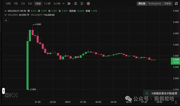 另一方面,台湾时间6 月20 日20:00 点,LayerZero 原生代币ZRO 已陆续在OKX、Bitget、币安等交易所登陆,开盘后ZRO 最高一度来到4.89 美元。