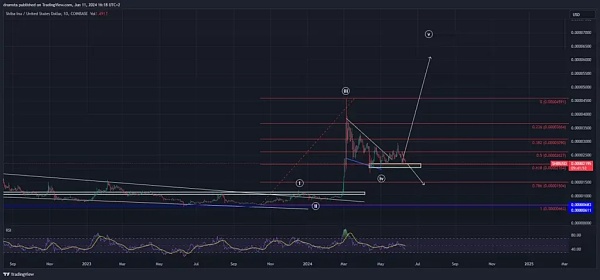 在确认这种模式之前,仍然存在进一步下跌的风险,潜在下行目标为0.000015美元。