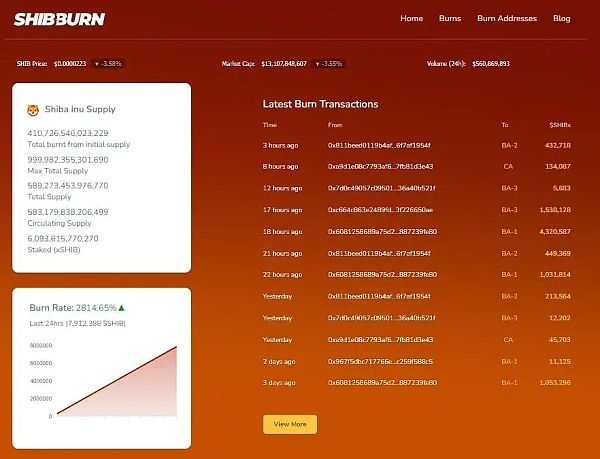 虽然柴犬数量略有下降,但销毁率却激增了2,814%,最近销毁了7,912,388个SHIB,比之前的约200,000个大幅增加。这种销毁活动的增加主要归因于三个主要钱包,每个钱包都为销毁贡献了超过一百万个SHIB。最大的钱包仅就销毁了4,320,587个SHIB。这一销毁潮使得超过410万亿个SHIB退出了流通。