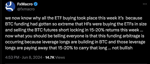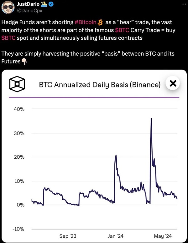 这很可怕。但也许更为轻松的答案是,机构正在通过比特币现货和期货进行套利。