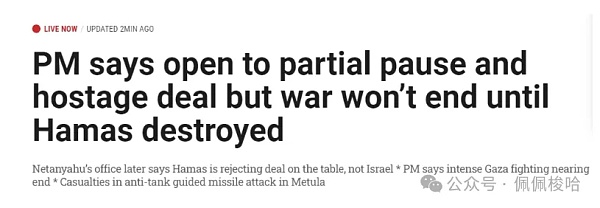 以色列总理内塔尼亚胡表示,愿意部分暂停并达成人质协议,但直到哈马斯被摧毁后战争才会结束。总理办公室强调,拒绝这项协议的是哈马斯,而不是以色列。