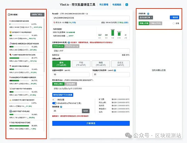 符文批量蚀刻工具-> 支持无限 RBF 加速-> 批量打20个,对比其它平台费用最低-> 支持打符文到不同的钱包地址, 对某些场景非常有用(例如做空投任务)