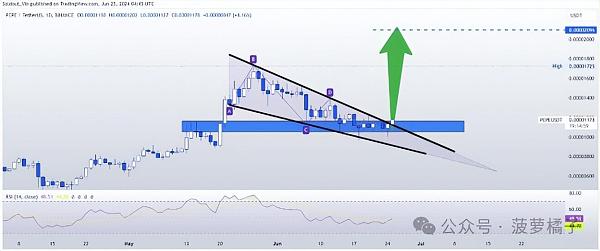 价格回调形成了持续一个月的下降楔形,预计将突破上行 96%,将 PEPE 价格设定为新的 ATH 价格 0.00002096 美元。