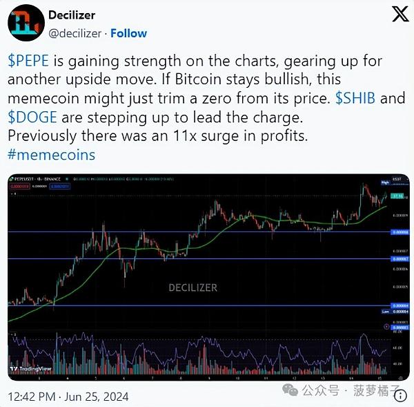 加密货币分析师 Decilizer 认为,如果比特币价格保持看涨势头,Pepe 正准备将其降至零。