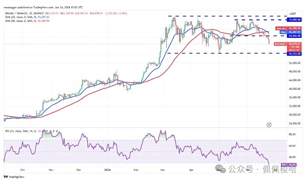 移动平均线已完成看跌交叉,RSI 处于超卖区域,表明空头牢牢占据主导地位。比特币可能跌至60000美元的稳固支撑位。预计这一水平将吸引多头的强劲买盘,但任何反弹都可能在20日均线65687美元面临抛售。如果价格从20日均线下跌,跌至56552美元的可能性将会增加。