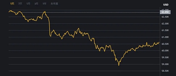 BTC出现单日5%的大阴线后,适合立即抄底。当前,BTC短线已进入超跌阶段,短期内预计2~3天内能够止跌,即使进一步下探,也会被迅速拉回。中期企稳仍需时间,但短线波动加剧,操作机会增多。在两天的超跌周期中,可以利用BTC的小幅下跌,在恐慌中买入/做多。短期压力位在61770 ~ 62490之间,短期支撑位在58850 ~ 57560之间。