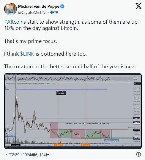 在加密货币世界中,著名分析大师Michael van de Poppe像掌握着一套解密天机的魔法师一般,指出了一种让人熟悉的奇妙模式!他毫不犹豫地宣称,山寨币总是随着比特币的下跌而低迷,但一旦比特币触底,它们就会如同被解放的猛虎般狂奔而起!