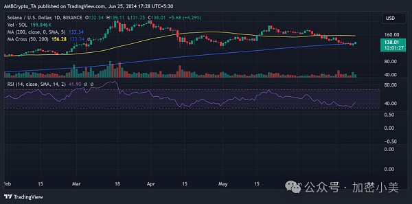 尽管整个市场陷入极度低迷的状态,尤其是在 6 月 24 日,比特币 [BTC] 和大多数山寨币纷纷下跌,然而 Solana 却宛如凤凰涅槃,实现了令人瞩目的显著复苏,当日收盘价约为 132 美元,涨幅竟然超过了 2.8%。