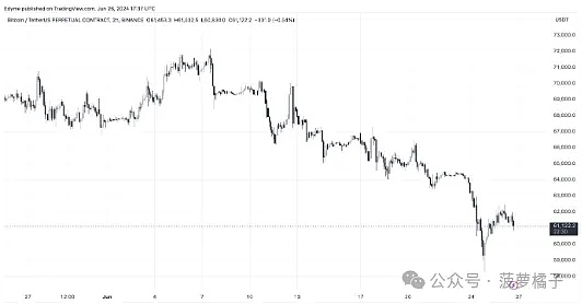 尽管 Woo 对长期持乐观态度,但比特币的短期走势仍面临挑战,最近的数据显示比特币正在下跌。过去一周,比特币价值下跌 5.3%,过去 24 小时内小幅下跌 0.1%,稳定在 61,486 美元的市场价格。