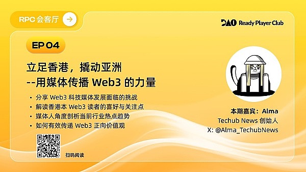 本期访谈,我们邀请到了香港头部区块链媒体的 Techub News 的创始人 Alma。