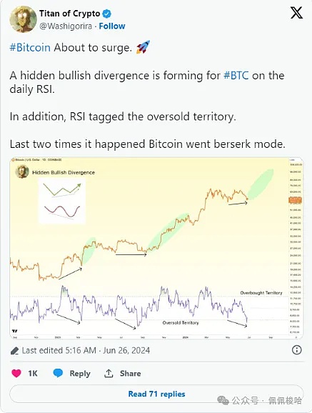 马丁内斯在X 上写道:“想象一下,有一个指标可以预示着买入#Bitcoin 逢低的最佳时机......大家把事情简单化,研究每日的$BTC RSI。”