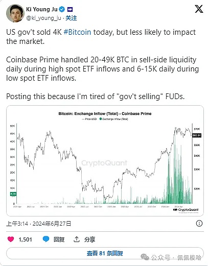对此情况,数据分析平台CryptoQuant 执行长Ki Young Ju 稍早在X 发文称: