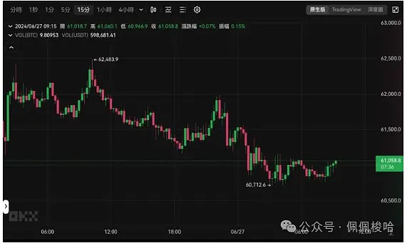 或受此资讯影响,比特币又再次跌破6.1 万美元,并于午夜三点最低来到60,712 美元。截稿前回弹至61,058 美元,近24 小时下跌1.72%。