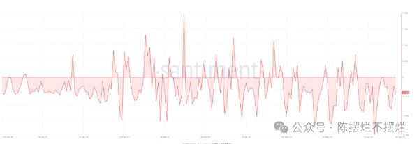 资产的加权情绪会跟踪社交媒体平台上对该资产的正面和负面评价。当其值小于零时,讨论该资产的人普遍存在消极情绪。
