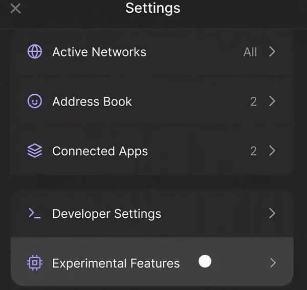 选择Experimental Features(实验特性)选项;