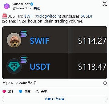 该代币继续创下新的里程碑。WIF 最近在 24 小时链上活动方面超过了 USDT。这一发展表明 WIF 在加密货币领域拥有多么强大的立足点。