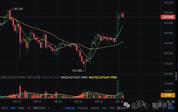 受此消息激励,SOL 一度拉涨8% 突破150 美元,截稿前稍有回落线报147.9 美元。