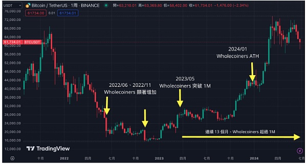 BTC Wholecoiners 连续13 个月保持在100 万以上