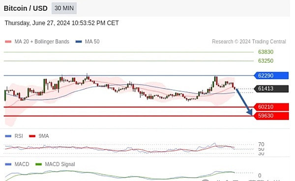 “替代方案是上行突破62290美元,将指向63250和63830美元。”