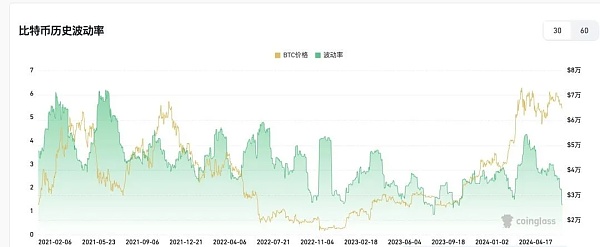 波动率反映了市场变动的幅度,但很多人认为最近几天的波动已经相当大了。然而,实际上,真正的趋势行情到来时,BTC的价格可能会在几天甚至一天内出现上万美元的剧烈波动,而在短短15天内可能会经历翻倍或腰斩的情况。因此,相比之下,现在的波动可能只是主流市场行情中更为平静的一部分。