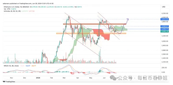 由于多头和空头频繁展现实力,加密货币市场呈现出不同的趋势。当比特币价格跌破 59,000 美元时,以太坊价格暴跌至近 3200 美元,但随后回升至 3400 美元以上。价格略微跌破该水平,但显示出未来几天可能重新回到 3500 美元以上的水平。当前的交易设置表明,随着第二大代币即将登月, ETH 价格正在为大幅上涨做准备。