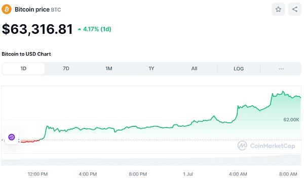 今日加密货币价格:比特币回升至 63,000 美元 山寨币市场飙升