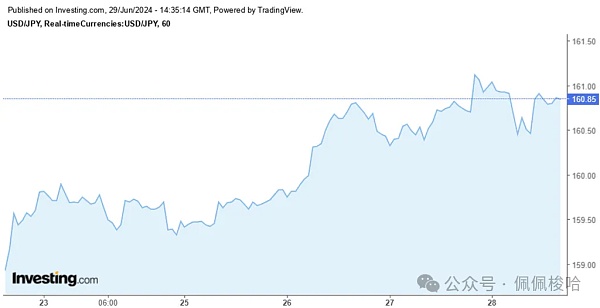 日圆持续下跌,我们可以线上图上看到明显的政府出手干预,但显然没有被市场尊重,日圆续贬,徘徊在160 左右的水准。日圆沦为大家上冲下洗的赌场,已经没有任何基本面在支撑,市场单方面在血洗日本央行和财政部。此外,日本央行正在就削减债券计划在日本公债市场参与者之问进行调查。