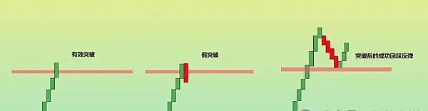 有效突破是个蛮主观的东西,当实体柱大部分身体穿过阻力区域上方时,就可以认为是突破了。但是后续有面临假突破的情况,也就是第二张图。