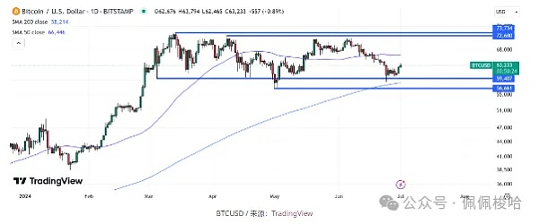 比特币(BTC)的最新交易价约为 63,500 美元,在过去 24 小时内上涨约 2.5%。