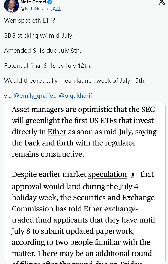 北京时间7月23日晚上美股开盘后 ETH 的ETF开始交易。ETH的里程碑啊,新的时代开启。突破前...