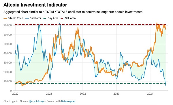 山寨币投资指标:类似于 TOTAL/TOTAL3 震荡指标的汇总图表,用于确定长期的山寨币投资