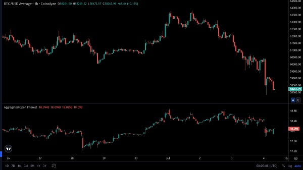 比特币的价格在过去 24 小时内下跌了 3%,截至本文发布时交易价格为 58,895.78 美元。整个加密货币市场下跌了 3.35%。比特币的 24 小时交易量为 310 亿美元,价格在 60,449.99 美元至 58,333.22 美元之间。比特币的未平仓合约下跌了 1.94%,目前估值为 181 亿美元。