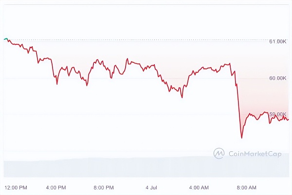 今天早些时候,比特币 [BTC] 市场遭受重创,该资产从 61,055 美元的高点一路跌至 57,800 美元的低点。截至发稿时,BTC 交易价格为 58,854.99 美元,涨幅为 3.60%。其余市场也紧随其后,以太坊 [ETH] 和 Solana [SOL] 等强势参与者在过去 24 小时内分别下跌了 4.40% 和 8.96%。